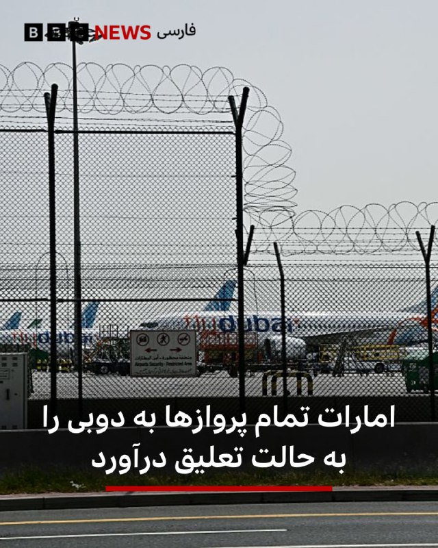 🔻شرکت هواپیمایی امارات در بیانیه جدیدی که در شبکه اجتماعی ایکس منتشر شده اعلام کرد که «تمام پروازها به دوبی تا اطلاع ثانوی به حالت تعلیق درآمده است.» این شرکت از مسافران خواست: «لطفاً به فرودگاه مراجعه نکنید.» هواپیمایی امارات همچنین گفته است که به محض دریافت اطلاعات جدید، بهروزرسانیها را منتشر خواهد کرد و تأکید کرده است: «ایمنی مسافران و خدمه ما بالاترین اولویت است و هیچگاه به خطر نخواهد افتاد.» 📸GettyImages bbc.in 🇬🇧 BBCPersian 🤖 @VahidHeadline