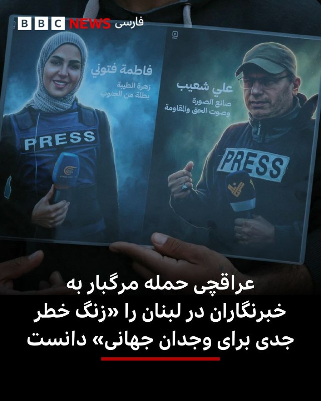 🔻عباس عراقچی، وزیر امور خارجه ایران، حمله مرگبار اسرائیل به دو خبرنگار و یک فیلمبردار در لبنان را «تلاشی برای ترور حقیقت» و «زنگ خطری جدی برای وجدان جهانی» دانست. علی شعیب، خبرنگار تلویزیون المنار و فاطمه و محمد فتونی، خبرنگار و فیلمبردار المیادین، در حمله هوایی اسرائیل در شهر جزین کشته شدند. آقای عراقچی در پستی در رسانههای اجتماعی، گفت: «این اقدام که بهروشنی یک ترور هدفمند با نیتی فراتر از حذف افراد بود، تلاشی آشکار برای 'ترور حقیقت' و خاموش کردن صدای روایتگران واقعیت محسوب میشود.» ارتش اسرائیل تأیید کرده است که علی شعیب را در یک حمله کشته است، اما او را متهم میکند که از عوامل حزبالله بوده و خود را بهعنوان روزنامهنگار جا زده است. خبرنگار خاورمیانه ما میگوید، این دومین باری است که اسرائیل از زمان آغاز جنگ به هدف قرار دادن روزنامهنگاران در لبنان متهم میشود. وزیر خارجه ایران کشتن این سه نفر را نقض صریح قوانین و کنوانسیونهای بینالمللیِ دانست و گفت: « تکرار چنین جنایاتی بهروشنی نشاندهنده تداوم رویکردی خصمانه با هدف محدودسازی آزادی بیان است.» 📸 AFP via Getty Images 🇬🇧 BBCPersian 🤖 @VahidHeadline