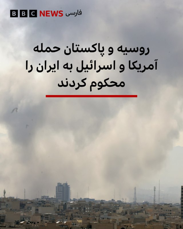 🔻دولتهای روسیه و پاکستان حملات نظامی آمریکا و اسرائیل به جمهوری اسلامی را محکوم کردند. وزارت خارجه روسیه، اقدامات ایالات متحده و اسرائیل را «بیملاحظه» توصیف کرده و نقض قوانین بینالمللی خوانده است. روسیه خواستار بازگشت به راهحلهای سیاسی و دیپلماتیک شده است. همچنین آنتونیو گوترش، دبیرکل سازمان ملل متحد، و مای ساتو، گزاشگر ویژه شورای حقوق بشر سازمان ملل متحد در امور ایران و جنبش مقاومت اسلامی فلسطین (حماس) هم این حملات را محکوم کردند. دولتهای مالزی، بلژیک، هند، چین، ترکیه هم خواستار خویشتنداری دو طرف شدهاند. 📸EPA/Shutterstock bbc.in 🇬🇧 BBCPersian 🤖 @VahidHeadline