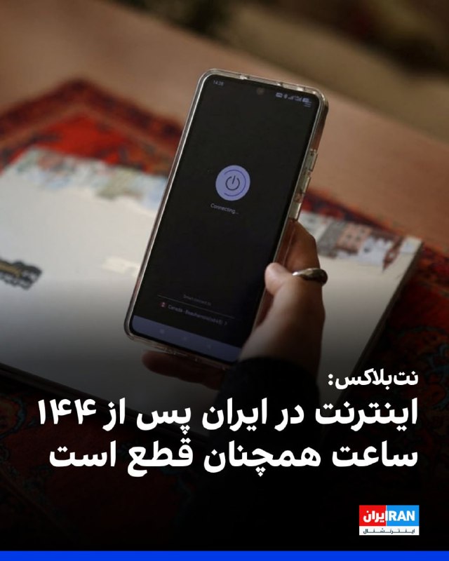 وبسایت نتبلاکس که اختلالهای اینترنتی در جهان را رصد میکند، صبح جمعه ۱۵ اسفند اعلام کرد ایران پس از شش روز کامل قطع اینترنت، همچنان در «تاریکی دیجیتال» بهسر میبرد و پس از ۱۴۴ ساعت، سطح اتصال اینترنت در این کشور تنها یک درصد است. این نهاد ناظر بر اختلالهای اینترنتی در ادامه گزارش داد جمهوری اسلامی همزمان از طریق شبکههای دارای دسترسی ویژه، دستور کار خود را پیش میبرد و رسانههای همسو با خود را در داخل و خارج از کشور تقویت میکند. 🏁 🇬🇧 IranintlTV 🤖 @VahidOOnLine