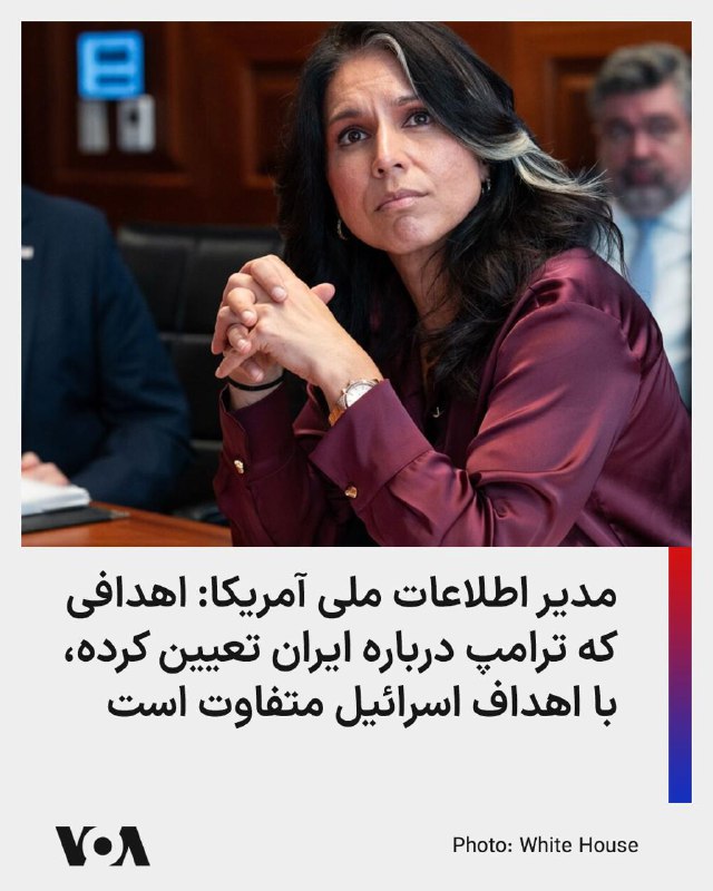 تولسی گبرد مدیر اطلاعات ملی آمریکا میگوید اهدافی که دونالد ترامپ درباره ایران تعیین کرده، با اهداف اسرائیل متفاوت است.