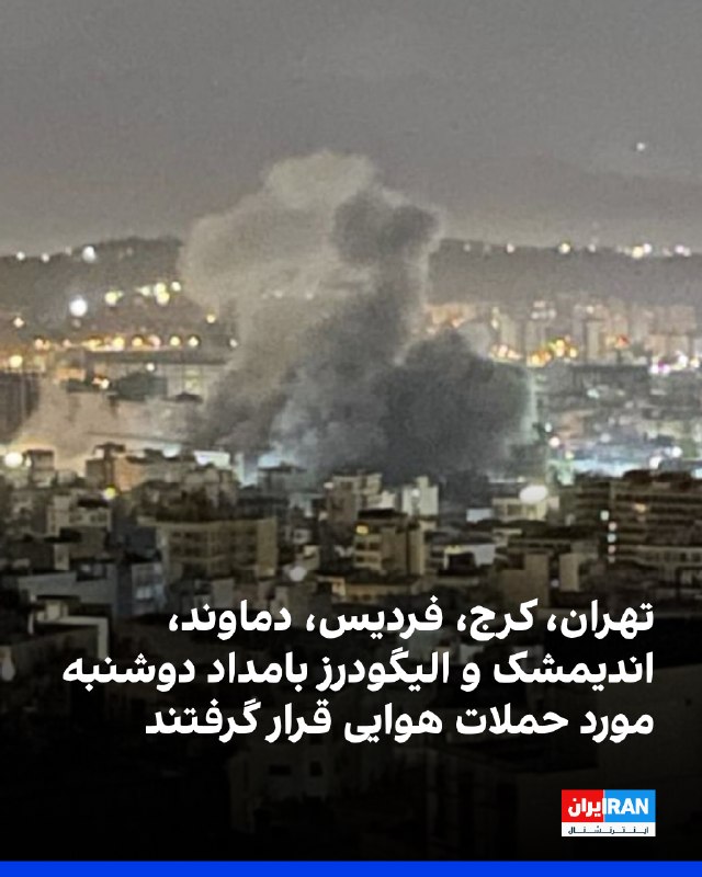 بر اساس گزارشهای شاهدان عینی در بامداد دوشنبه ۳ فروردین، تهران و چند شهر دیگر شاهد سلسلهای از انفجارها و پرواز جنگندهها بودهاند. در تهران، حوالی ساعت ۰۳:۱۲ انفجار شدیدی در حکیمیه رخ داد. همچنین در محدوده اندرزگو حملهای گزارش شد که لرزش پنجرهها را در پی داشت. از حدود ساعت ۰۵:۱۵ تا ۰۵:۳۰ نیز چندین انفجار سنگین در شرق تهران، از جمله حوالی کوههای لویزان، انتهای پیروزی، پشت کوههای پارچین و تهرانپارس شنیده شد و پدافند هوایی فعال بود. ساکنان میدان جمهوری و خیابان آذربایجان نیز از لرزش منازل خبر دادهاند. در استان البرز، در کرج از جمله گوهردشت و شهرک وحدت فردیس، صدای جنگندهها و چندین انفجار شدید گزارش شده و همزمان در برخی مناطق قطعی برق رخ داده است. در گرمدره نیز بمباران سنگین گزارش شده است. در دماوند از حدود ساعت ۰۳:۰۰ تا ۰۶:۰۰ چندین انفجار شدید شنیده شده و در اندیمشک نیز بامداد دوشنبه صدای انفجار در نزدیکی شهر گزارش شده است. در الیگودرز عبور جنگندهها به گوش رسیده و در یزد نیز صبح دوشنبه انفجار بسیار شدیدی رخ داده که لرزش آن تا چند کیلومتر احساس شده است. 🏁 🇬🇧 IranintlTV 🤖 @VahidOOnLine