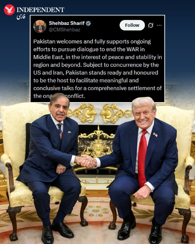♦️ شهباز شریف، نخستوزیر پاکستان، روز سهشنبه، چهارم فروردین اعلام کرد که اسلامآباد آماده است تا میزبان مذاکراتی برای پایان دادن به جنگ ایالات متحده و اسرائیل با جمهوری اسلامی باشد. این اظهارات در پی گمانهزنیهای فزاینده درباره نقش احتمالی پاکستان به عنوان میانجی مطرح شده است. او در شبکه اجتماعی ایکس نوشت: «پاکستان از تلاشهای جاری برای پیشبرد گفتگوها جهت پایان دادن به جنگ در خاورمیانه، در راستای صلح و ثبات در منطقه و فراتر از آن، استقبال کرده و بهطور کامل از آن حمایت میکند.» نخستوزیر پاکستان افزود: «در صورت موافقت ایالات متحده و ایران، پاکستان با افتخار آماده است تا به عنوان میزبان، تسهیلگر گفتگوهایی معنادار و تعیینکننده برای دستیابی به یک حلوفصل جامع در درگیریهای جاری باشد.» 🇸🇦 Indypersian 🤖 @VahidOOnLine