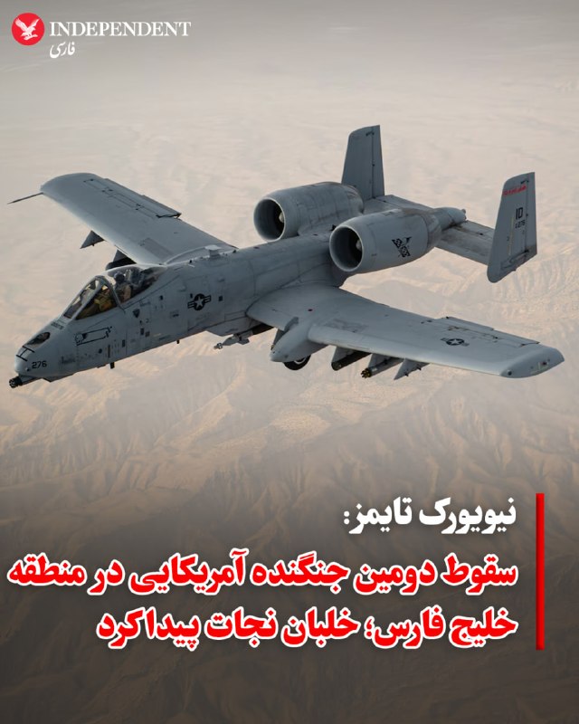 ♦️ به گزارش نیویورک تایمز، دو مقام آمریکایی که به دلیل حساسیت موضوع نخواستند نامشان فاش شود، تایید کردند که روز جمعه ۱۴ فروردین، دومین هواپیمای رزمی نیروی هوایی ایالات متحده در منطقه خلیج فارس سقوط کرده است. طبق گفته این مقامات، خلبان این جنگنده که تنها سرنشین آن بود، بهسلامت نجات یافته است. این جنگنده تهاجمی از نوع A-10 Warthog (گراز زگیلدار) بوده و تقریبا همزمان با سرنگونی جنگنده F-15E بر فراز ایران، در نزدیکی تنگه هرمز سقوط کرده است. در حادثه مربوط به F-15E، تاکنون یکی از خدمه نجات یافته و تیمهای جستوجو همچنان در تلاش برای یافتن سرنشین دوم هستند. مقامات نظامی جزئیات اندکی درباره نحوه و مکان دقیق سقوط هواپیمای A-10 ارائه کردهاند و هنوز مشخص نیست که آیا این حادثه ناشی از نقص فنی بوده یا هدف قرار گرفته است. 🇸🇦 Indypersian 🤖 @VahidOOnLine