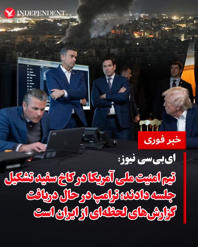 ♦️به گزارش شبکه «ایبیسی نیوز»، تیم امنیت ملی دونالد ترامپ در کاخ سفید گرد هم آمدهاند. براساس این گزارش، رئیس جمهوری ایالات متحده تمام روز را در دفتر بیضی یا سالن غذاخوری آن، در حال دریافت گزارشهای لحظهای از عملیات در ایران سپری میکند. یک مقام ارشد کاخ سفید با تایید این خبر اعلام کرد رئیس جمهوری بهطور مستمر در جریان آخرین تحولات میدانی قرار دارد، در حالی که تنشها و عملیات نظامی میان دو طرف ادامه دارد. 🇸🇦 Indypersian 🤖 @VahidOOnLine